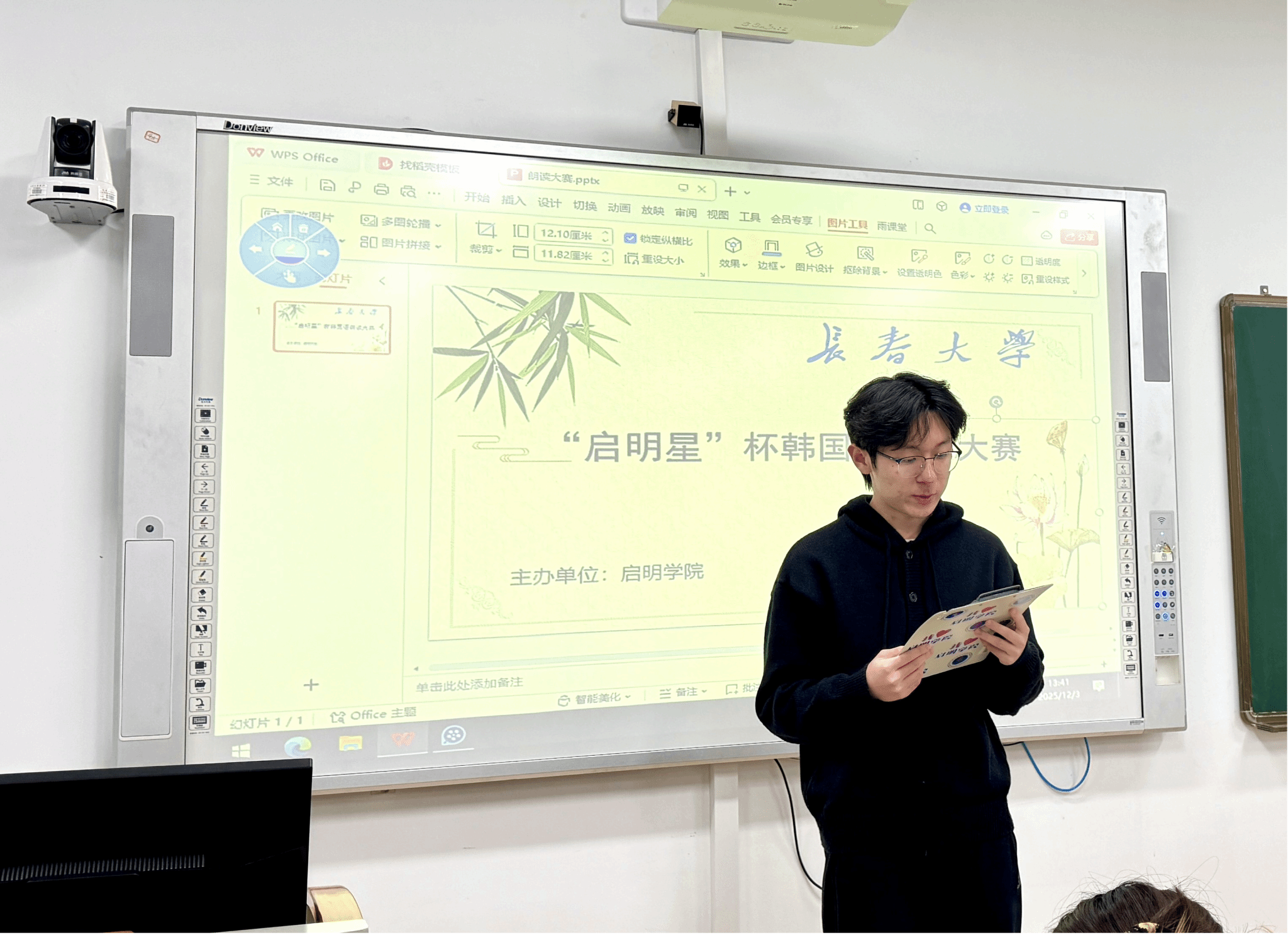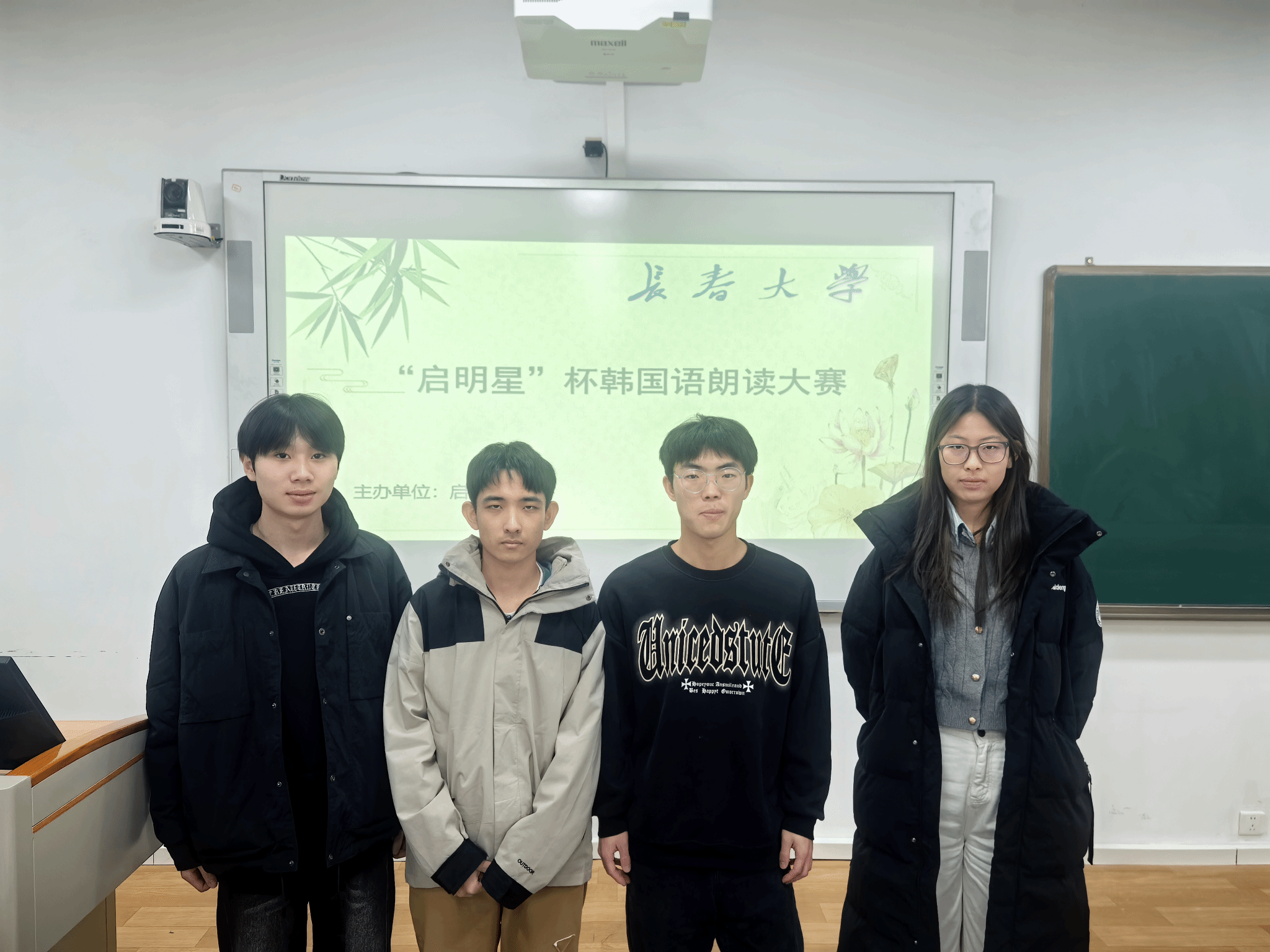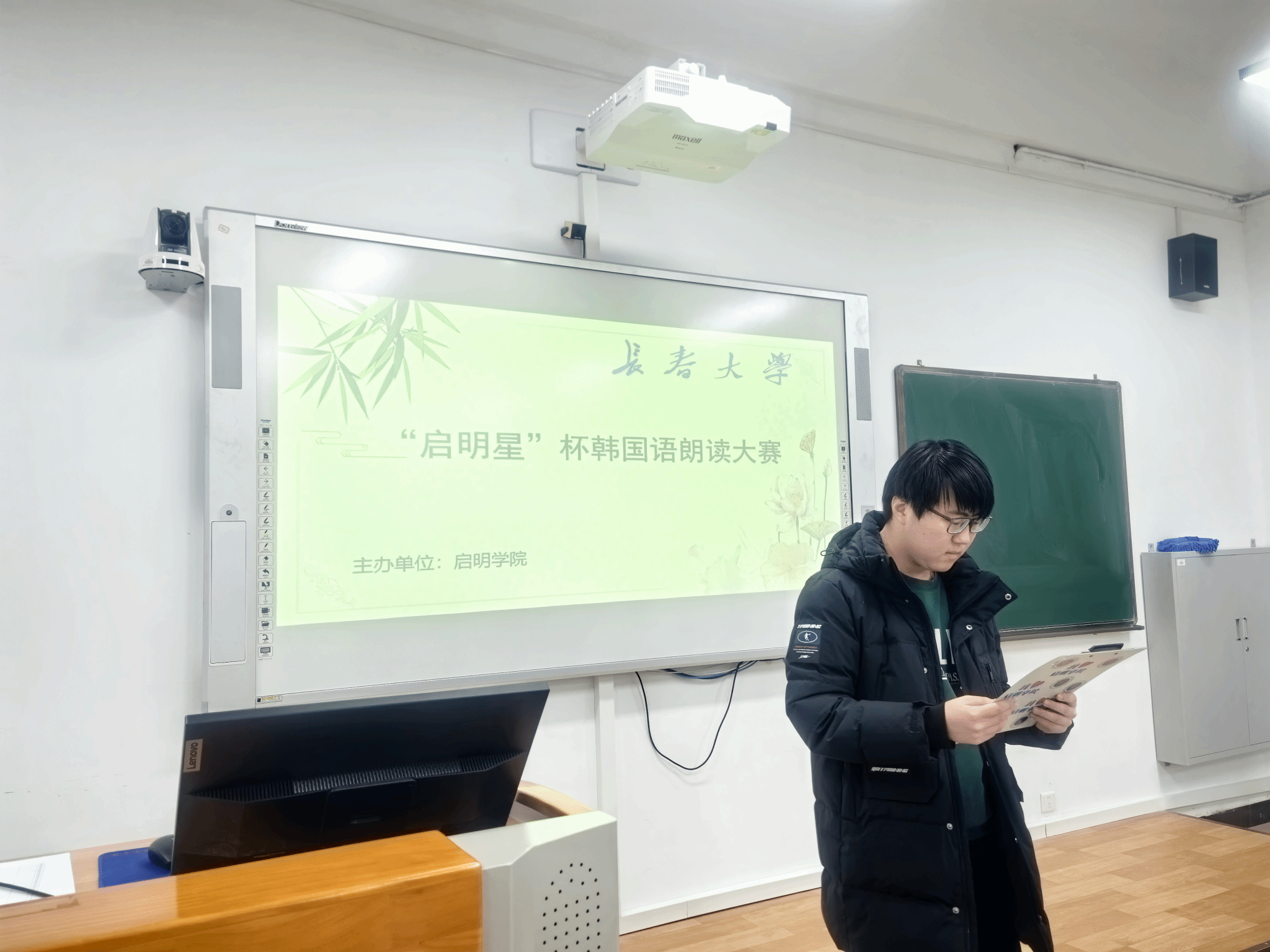 12月3日,由启明学院主办的长春大学“启明星”杯韩国语朗读大赛在知行楼C区505落下帷幕。经过激烈角逐,来自启明学院车辆工程专业2024级4班的刘欣卓同学、电子信息工程学院的电子信息工程专业2024级9班的权容瀚同学凭借准确的发音、充沛的情感以及对文本的深刻理解,最终荣获大赛一等奖。