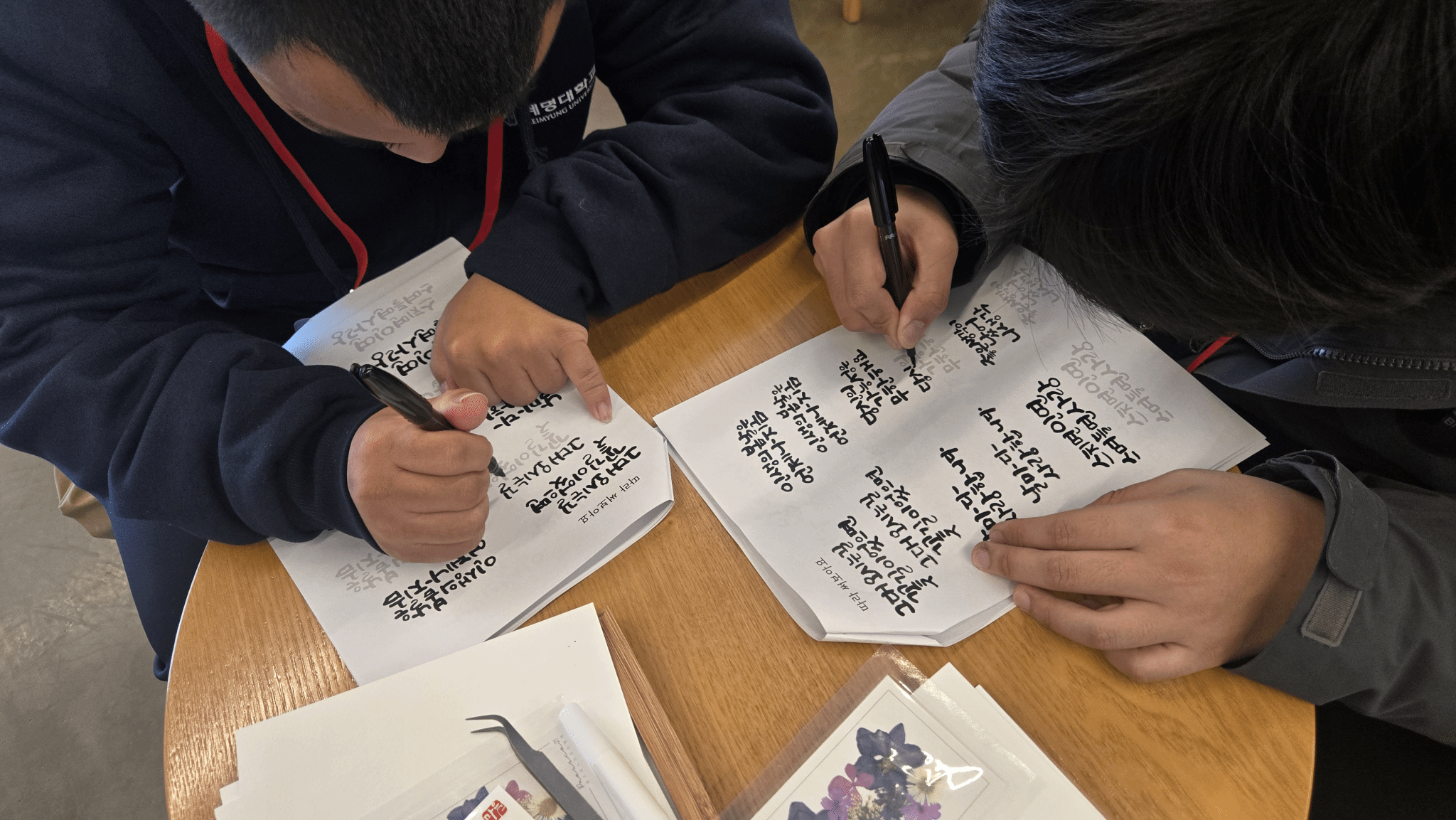 五育融合实践中韩传统手工工作坊、韩语书法大赛收集优秀作品150余件。