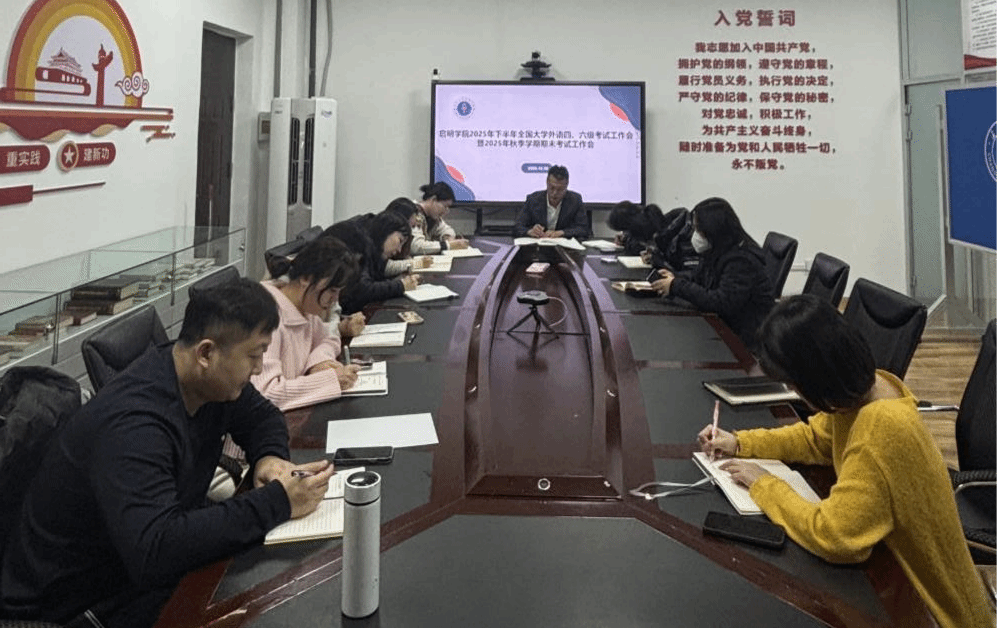 启明学院于12月10日下午在知行楼B503会议室召开了2025年下半年全国大学外语四、六级考试工作会暨2025年秋季学期期末考试工作会。教学副院长杨斌主持会议,韩语教研室全体教师参会。